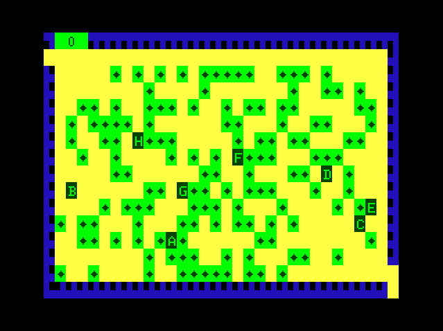 Richard the Lionheart is building his forces for the Third Crusade and Prince John’s army is tracking you down. You will see lettered squares representing your crusaders – to collect a group,you move onto the square which they occupy by pressing the cursor keys. The higher lettered squares represent a greater number of men.