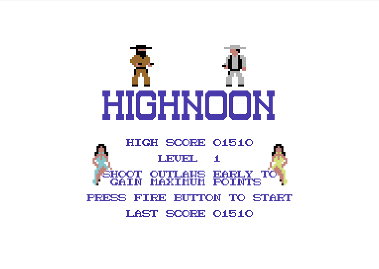One excellent feature of High Noon is the music — an upbeat ‘High Noon’. The game is the work of Andy Spencer of International Soccer fame.