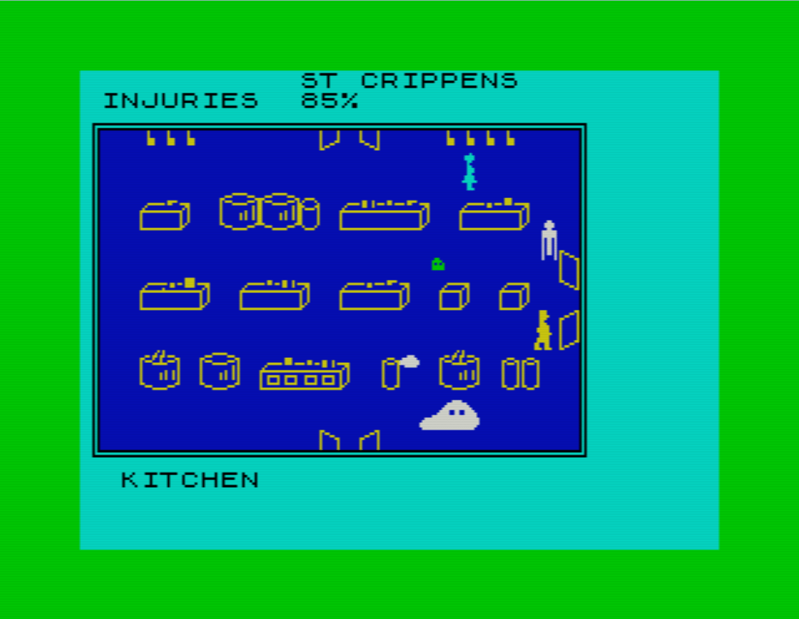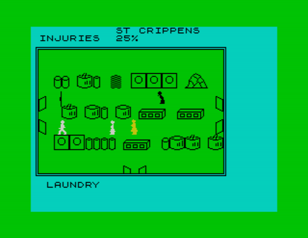 HOSPITALS have never been popular places and with its boast, ‘Worst hospital in the world,’ St Crippens won’t change that. Patients never recover and often disappear for ever. Guiding your patient around you explore the rooms searching for clothes – essential to your escape. Hospital staff will pursue you. There are bedpans lying about the ward floors, mutants in the Genetic Engineering Department and mould on the kitchen floor.